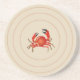 Sandstone coaster is shown with a art print of a red crab.