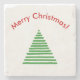 Xmas tree in stylized image. Multiple lines in green, of decreasing length, create the image of a Christmas tree. The red text that curves above the trees reads "Merry Christmas!"