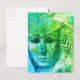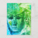 Stone face Abstract Mix Media Collage Blue Green Postcard