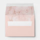 Not all wedding designs are created equal! The asymmetrical layouts for the pieces in this striking wedding set prove that. The interior of the matching wedding envelope shown here features a coordinating abstract background reminiscent of stone veined with glitter in shades of rose gold. Exterior soft blush pink is optional. Easily add your names and address on the back flap using the provided template. Search ID647 to see all the coordinating pieces in this set.