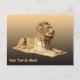 A tan and brown rendering of a carved stone lion on a background of the same colors. Add your own text.