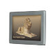 A tan and brown rendering of a carved stone lion on a background of the same colors. Add your own text.