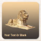 A tan and brown rendering of a carved stone lion on a background of the same colors. Add your own text.