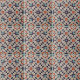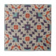 This ceramic tile is a true work of art, featuring a captivating geometric pattern that combines both complexity and elegance. The design showcases a symphony of shapes, including stars and hexagons, meticulously arranged to form a harmonious mosaic. The color palette is a rich tapestry of purples, oranges, and teals, set against a speckled beige backdrop, creating a vibrant yet sophisticated look.