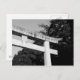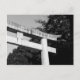 Black and white photo of stone torii gate on Miyajima Island in Japan.