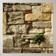 The image on this item is of an old stone wall in a variety of different types of stone, with a small green plant. The image on this item was created from a digital photograph, a flat printed image, not raised or textured.