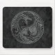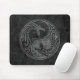This stunning yin yang design features two stylized tribal dragons. Intricate lines and swirls decorate both sides of this traditional symbol creating a beautiful pattern. The two dragons flow from the bottom of the teardrop and have their mouths wide open in an aggressive stance. Rough stone textures cover this unique yin yang design creating a stylish version of this symbol for balance.