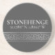 Latitude and longitude coordinates for Stonehenge, a UNESCO site on Salisbury Plain in Wiltshire, England. Silver Celtic border embellishment with dark gray background