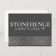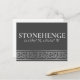 Latitude and longitude coordinates for Stonehenge, a UNESCO site on Salisbury Plain in Wiltshire, England. Silver Celtic border embellishment with dark gray background