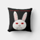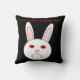 This awesome pillow features the sad face of a white rabbit. This rabbit has a big frown on its face because it is a lab rabbit that has had cosmetics tested on it. The whites of its eyes are red and swollen. The design has been created to bring to attention the unnecessary suffering caused by the testing of cosmetics on animals. The bold red text reads “stop animal testing now!”