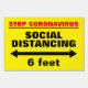 Stop CoronaVirus yard sign Social Distancing 6ft