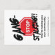 stop gang-stalking postcard, white background, red stop sign, black lettering