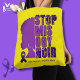 STOP MISOGYNOIR Domestic Violence Awareness Tote Bag in YELLOW with CUSTOMIZABLE TEXT. Design shows afro queen silhouette with bold 'split design' typography and purple glitter. CUSTOMIZABLE TEXT reads STOP DOMESTIC VIOLENCE ABUSE and can be PERSONALIZED with your choice of text. Add your name, family name, or organization. You can change the background color by editing the design and choosing from the color palette. Buy for your family, group or organization to show your support for Domestic Violence Awareness Month.
