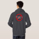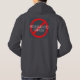Dark grey hoodie with a red, STOP sign on the back that says: Monsanto GMOs.