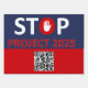 Inform and engage your community with the "Stop Project Project 2025" sign. Featuring a QR code for quick access to more information, this sign is designed to raise awareness and encourage political activism. Perfect for yards, rallies, and public spaces.
