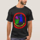 Vintage style tee with a colorful emblem showing a person throwing the radical feminist symbol into the trash.