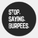 Stop Saying Burpees Exercise Bodybuilding Gag Joke Classic Round Sticker