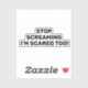 Stop Screaming I'm Scared Too Black Text Design Sticker. Grab this design as gift for your family and friends. You can also find suitable products with this design in the collection.