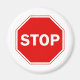 Octagonal red and white stop sign. Image available on various gifts and products. Magnets.