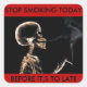 Stop smoking today before it,s to late sticker. Help promote good health with this stop smoking sticker.