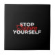 Elevate your space with this inspiring ceramic tile design featuring the bold motivational phrase "Stop Stopping Yourself". The minimalist black background highlights the powerful typography in a modern combination of white and red text. The word "Stopping" stands out with its expressive brushstroke style, adding a dynamic touch to the design. Perfect as a decorative piece for your desk, kitchen backsplash, or wall art, this tile serves as a daily reminder to overcome self-doubt and embrace action. Durable and easy to clean, it’s a stylish addition to any interior.