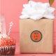 Text "This end up" on orange circle, on dark background. For any situation when things might get turned upside down. For practical use, storage branding, on the move, or for fun making it easier for anyone who finds your friend on the ground after a night in the bar (make sure that sticker is attached to friend's *upper* body part)... Gray frame can be removed to add any chosen background color.