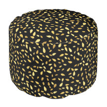 Black and Gold Nature Illustrated Floral Pattern Pillar Candle