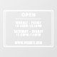 Window sign for store hours of operation. Personalize it with your shop's personal business hours and website. Display it on the front window or door of your location.