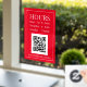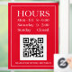 Store Hours Open Sign, QR Code, Red & White Window Cling