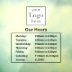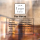 An open hours window decal for your store and business. The text on the decal has a bold font and is in black. Simply add your logo and add your business hours.