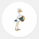 Stork at Bowling with Bowling ball Classic Round Sticker