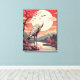 Stork at sunrise by the Lake and Sakura trees Canvas Print