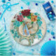 Elegant ,colorful,vibrant vintage style floral design with a baby and flying stork among the beautiful romantic pink,red roses,teal blue spring flowers and a bright 3D gemstone by Bulgan Lumini (c).Easy to customize with your own text and inizials for baby showers,child's birthday parties , or just about any event you wish!