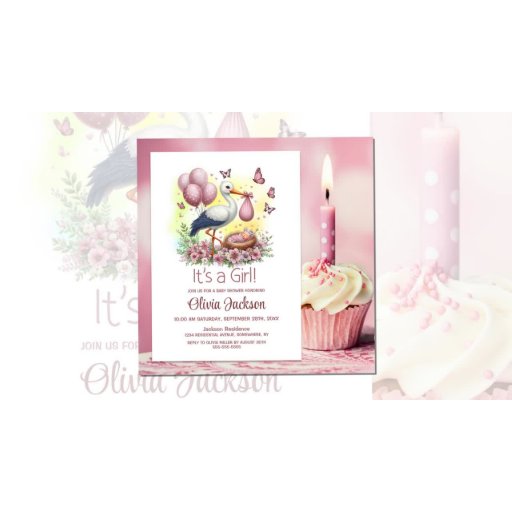 You can apply the design of your Stork Baby Girl Baby Shower Invitation to other items for a party such as stickers. The same goes for all of our digital products - any digital product/ design you purchase can also be used on any Zazzle product.