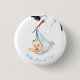 Customizable - Stork Carrying Baby Buttons with Text - MIGNED Painting - or Add Your Text / Name with Customization tool ! Good Luck - Be Happy :)