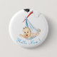 Stork Carrying Baby Funny Button - Custom Text