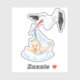 Stork Carrying Baby Funny Stickers with Text - MIGNED Painting Design - Customizable - or Add Your Custom Text / Name with Customization tool !