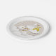 Neutral baby shower paper plates featuring an illustration of a stork in the clouds with a yellow bundle.