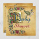 STORK GIRL BABY SHOWER FLORAL PARCHMENT MONOGRAM INVITATION