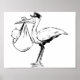 This design is a stork holding a baby. The stork has the baby in a blanket and is holding it in its beak. This stork holding a baby design looks great on this Poster