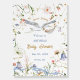This baby shower Welcome Sign features delicate wildflowers intertwined with a blue hand painted ribbon and a vintage stork carrying a baby boy home and another stork with an umbrella and sweet baby gifts in soft watercolor tones. You can easily fill in the template with your own details or go into further editing to change the font style, size, color and placement if you wish. See the matching items in the Stork Wildflower Ribbon Baby Shower Collection in my shop.
