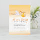 Cute new baby orange grey shower invite, featuring cute watercolor painting of a whimsical stork delivering a new baby. Whimsical unisex baby shower invitations. Personalize with your baby shower details. © Uniquely painted in watercolor and designed by Sarah Trett.