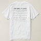 Stormchaser on the front. On the back is the Moojita scale M0 Tornado- Cows in an open field are spun around parallel to the wind flow and become mildly annoyed M1 Tornado- Cows are tipped over and can't get up M2 Tornado- Cows begin rolling with the wind M3 Tornado- Cows tumble and bounce M4 Tornado- Cows are AIRBORN M5 Tornado- HAMBURGER!!!