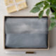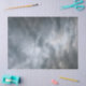 Dark stormy clouds are breaking apart in the foreground of this color photograph. The cloud layers become lighter shades of gray deeper into the image. Hints of light blue sky are visible beyond the storm clouds as the weather starts to clear up.