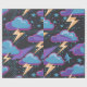 A vibrant and dynamic pattern featuring colorful storm clouds with striking lightning bolts and stars against a dark, starry background. Perfect for adding an electrifying touch to various designs and products.