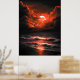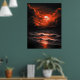 A dramatic seascape under a crimson-hued storm, where lightning strikes illuminate the ominous clouds around a glowing moon. The dark ocean waves reflect the fiery sky, blending monochrome depths with vibrant red highlights. This artwork evokes power and mystery, perfect for those drawn to moody, atmospheric, and apocalyptic landscapes. A bold statement piece with intense contrast and energy.