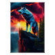 Capture the Wild: A fierce wolf guards its realm atop a rugged cliff, at sunset as a crimson storm brews in the backdrop, while a majestic waterfall roars below. This stunning poster is a testament to nature's untamed beauty."