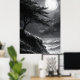 Stormy Cliff Moonlight in Monochrome Black & White Poster