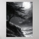 Feel the power of nature with this striking monochrome artwork. A lone windswept tree clings to the edge of a rugged cliff, overlooking a restless ocean under a glowing full moon. The swirling clouds and dramatic lighting create an intense and mysterious atmosphere, evoking solitude and resilience. The black and white palette enhances the raw beauty of the landscape, making this piece perfect for lovers of dramatic seascapes, moody nature art, and bold minimalist decor.