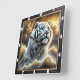This powerful timepiece features a white tiger set against stormy ocean waves and a dramatic sky. Framed in a sleek black or wooden border, it’s a bold blend of wildlife beauty and creative elegance. A perfect décor piece for nature lovers seeking a vivid, striking, and unique design.